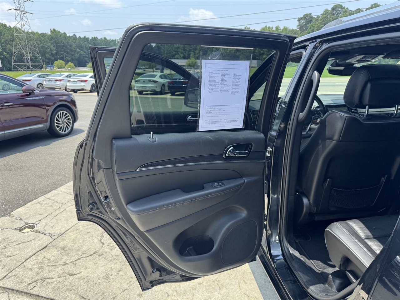 This 2020 Jeep Grand Cherokee Overland, has a Diamond Black Crystal Pearlcoat exterior and Black interior color with only 61,589 miles. Stock Number 7777. You can connect with us by calling 919-598-4000. No Accidents! One Owner! OTHER NOTABLE FEATURES AND OPTIONS YOU SHOULD KNOW ABOUT:Protech II ($1,895 value)Advanced Brake AssistRain Sensitive Windshield WipersLane Departure Warning PlusFull Speed FWD Collision Warn PlusAdaptive Cruise Control with StopParallel and Perp Park Assist with StopComfort Ventilated front seats -That's cool. Ventilated front seats provides targeted cool air so you and your passenger can get comfortable quicker in hot weather. Getting comfortable is no sweat when you have ventilated front seats.Convenience Smart device and keyfob engine start control - Phone ahead. Remotely start your vehicle's engine from the key fob or your smart device, ensuring your ride is ready to go when you get in. Now you can stay comfortable inside while your vehicle gets comfortable outside, ,thanks to Smart device and Keyfob engine start control. Power open and close liftgate - On-demand access. When your arms are full of cargo, the last thing you want to do is set it all down just to open the liftgate, then pick it all back up to load it in. By remotely opening and closing, power liftgate lets you skip straight to the loading. It also eliminates the awkward stretch to reach up for the liftgate to close it. Load and go with power open and close liftgate.Technology and Telematics Smart device mirroring - Smartphone, meet smart car. You can control your device through your vehicle's infotainment system. Smart device mirroring brings together safety and convenience by making it easier to find what you're looking for while keeping your eyes on the road. Voice activated integrated navigation system - A to B made easy! Whether it's an errand or a road trip, the voice activated integrated navigation system will guide you to your destination. No more bulky, impossible-to-fold maps, and no more stopping to ask for directions. Just tell it where you want to go, and the voice activated integrated navigation system shows you the right way. Premier Auto Group - Trusted Used Car Dealership in Durham, NCAt Premier Auto Group in Durham, NC, we've proudly served the Triangle since 1999, offering quality used cars, trucks, and SUVs at affordable prices. Guided by Proverbs 22:1 - A good name is rather to be chosen than great riches, and loving favor rather than silver and gold - our mission is to provide honest service, reliable vehicles, and a dealership experience built on integrity.Why Buy from Premier Auto Group?We know buying a car is a big decision. That's why customers across Durham and the Triangle choose us again and again:Large inventory of affordable used cars, trucks, and SUVs in Durham, NCEvery vehicle pre-sale inspected by ASE-certified mechanics for safety and reliabilityEasy auto financing - first-time buyers and all credit types welcomeFree Carfax reports available on every pre-owned vehicle3-day exchange policy (some exclusions apply) for peace of mindComplimentary airport pickup from RDU for out-of-state buyersVisit Premier Auto Group online at Premierautogroupofdurham.com to see more pictures of this vehicle or call us at 919-598-4000 today to schedule your test drive.